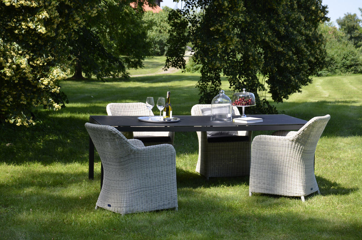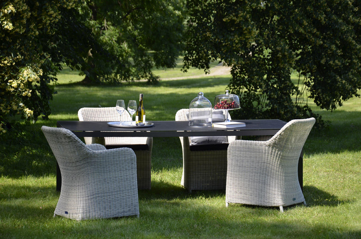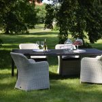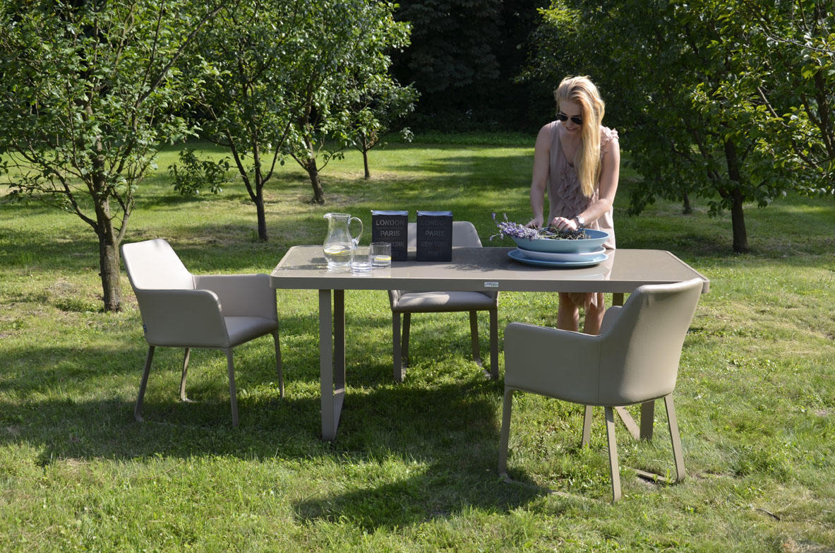 Marka Miloo oferuje kilka rodzajów tego rodzaju zestawów wśród o klasycznym jak i nowoczesnym wzornictwie. Czerpanie radości z przebywania na świeżym powietrzu to również możliwość spożywania tam posiłków. Wystarczy duży stół i wygodne krzesła, aby zaaranżować w ogrodzie letnią jadalnię. Większość kolekcji Miloo stanowią modele wykonane z odpornego na oddziaływanie warunków atmosferycznych eco-rattanu. Ofertę marki uzupełniają nowoczesne modele w całości tapicerowane wytrzymałą skórą jachtową lub tkaniną texteline i kojarzące z typowo salonowymi meblami. Urządzenie na zewnątrz domu strefy relaksu pozwala na maksymalne wykorzystanie krótkiego w naszym klimacie sezonu letniego.