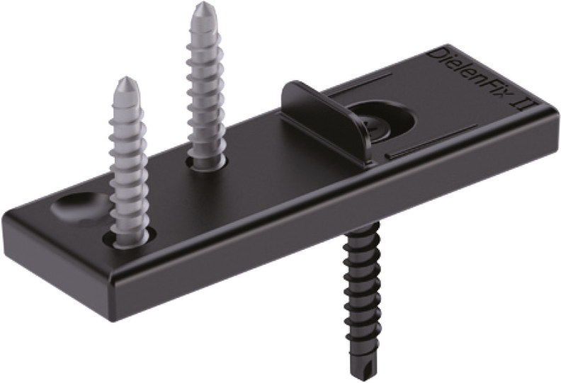 Umożliwia szybki i solidny montaż tarasu za pomocą metalowych złączek. Złączki posiadają dwa przedłużone otwory na wkręty, które ułatwiają pozycjonowanie. Każda ze złączek montowana jest tylko do jednej deski, a następnie wsuwana pod drugą i przykręcana do legara. System pozwala też na ewentualną wymianę zużytej lub uszkodzonej deski. Wysokość łącznika tworzy optymalną odległość między powierzchnią deski oraz konstrukcji nośnej, co zapobiega tworzeniu się stojącej wody. Drewno ma wówczas właściwe warunki do schnięcia, co znacząco wydłuża trwałość i żywotność całego tarasu. Co więcej, stal nierdzewna jest również bardziej odporna na zmienne warunki atmosferyczne niż jej plastikowe odpowiedniki.