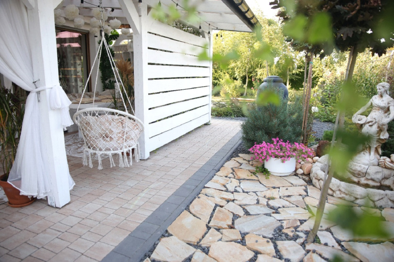 Drewniane meble – drewno jest materiałem, który od zawsze kojarzy się z ciepłem i naturą. Stylowe drewniane meble ogrodowe, takie jak stoły, krzesła czy ławki, sprawią, że taras z kostki brukowej stanie się bardziej przytulny.