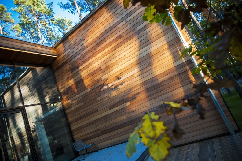 Oto gatunek, który nie jest ani egzotyczny, ani termowamy — jest genialny! Piękne i pachnące drewno, które można polecić w ciemno. Modrzew pochodzi z syberyjskiej tajgi, więc warunki pogodowe w Polsce to dla niego jak wakacje. Dzięki wysokiej zawartości żywicy jest od urodzenia odporny na rozwój grzybów i pleśni. Niska chłonność wody sprawia, że można całkowicie zrezygnować z jego impregnacji. Dla zachowania koloru polecamy olejowanie, ale o tym zaraz. Modrzew Syberyjski to sprawdzony sposób na wytrzymałą elewację, w której zakochasz się od pierwszego wejrzenia.