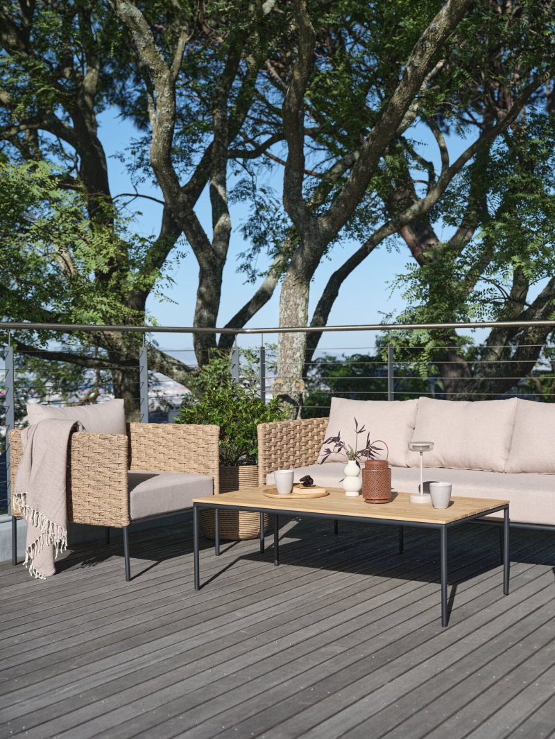Wzornictwo mebli ogrodowych jest równie ważne co materiał, z którego są wykonane. W tym sezonie modne są meble z prostymi i minimalistycznymi kształtami, czyli króluje styl skandynawski. Najwięcej uwagi w najnowszej kolekcji ogrodowej przyciągają innowacyjne wzory sznurkowe i sploty sęków. Zestawy wypoczynkowe DRUMMEHOLM i STOVNER zostały zaprojektowane w oparciu o zwiewny, lekki styl. Podczas gdy zestaw FJAND wyróżnia się silną, ale neutralną estetyką. Nowy zestaw wypoczynkowy DAMFENNER z plecionymi detalami, tworzy ponadczasowy i przyciągający wzrok wzór, dostosowany do każdej przestrzeni zewnętrznej.