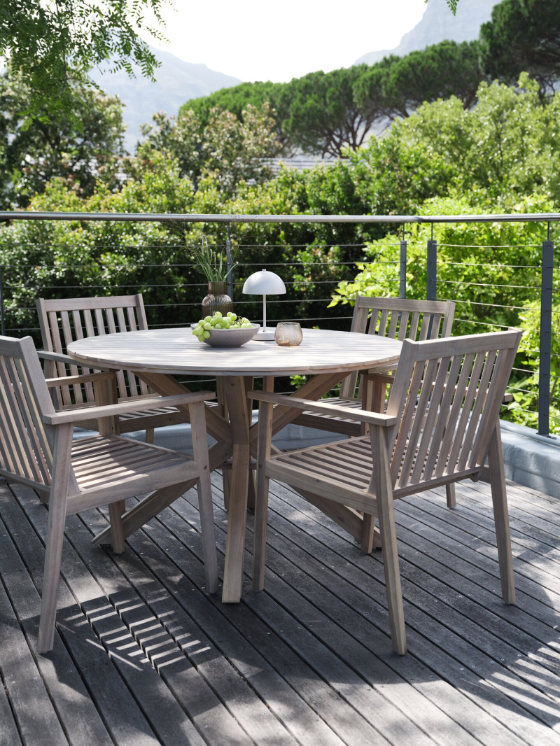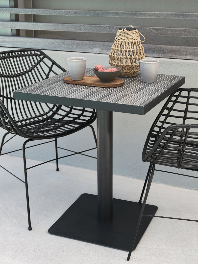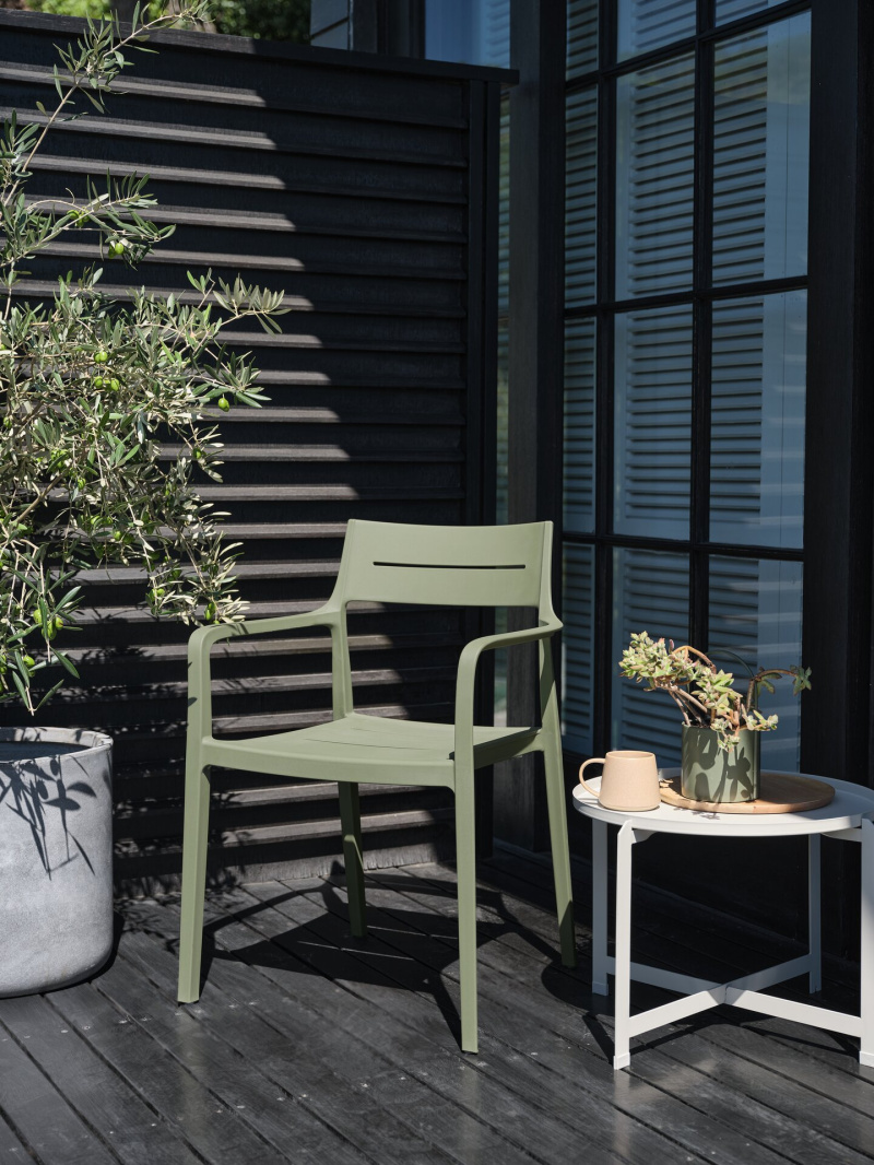 Lekkość i zaokrąglone kształty nadal dominują w zewnętrznych meblach, przy których chcemy spożywać posiłki. Nowy stół VAMDRUP z blatem z włókien cementowych oferuje surowy, nowoczesny wygląd, który pięknie komponuje się z krzesłem BRAVA z ubiegłorocznej kolekcji.