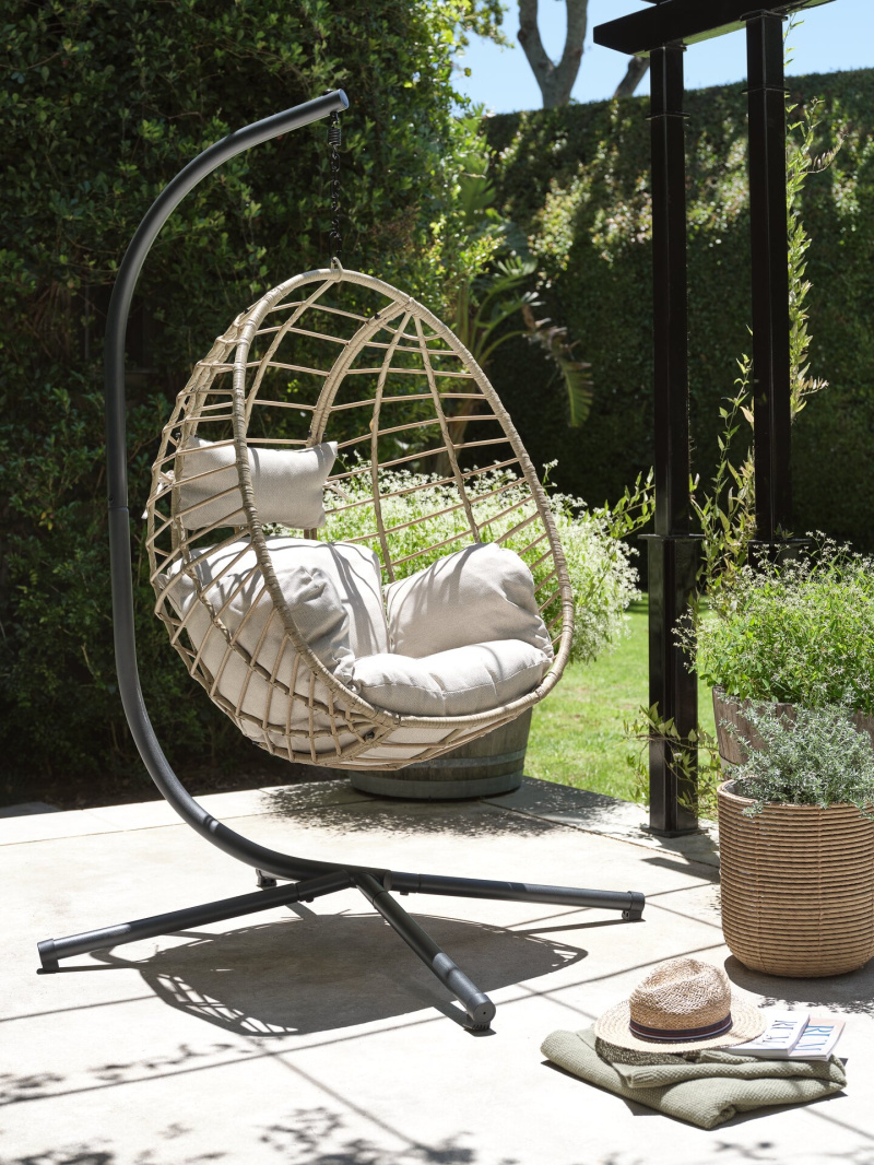 Zaokrąglone kształty w stylistyce mebli wypoczynkowych wciąż pozostają widoczne w wielu produktach, a na czele stoją zestaw HALVREBENE i popularny fotel wiszący BORK. Faworytem tego sezonu jest krzesło bujane JUNGLEDAL, na którym można usiąść, zatopić się w miękkości poduszek i delikatnie huśtać, czując powiew letniego wiatru.