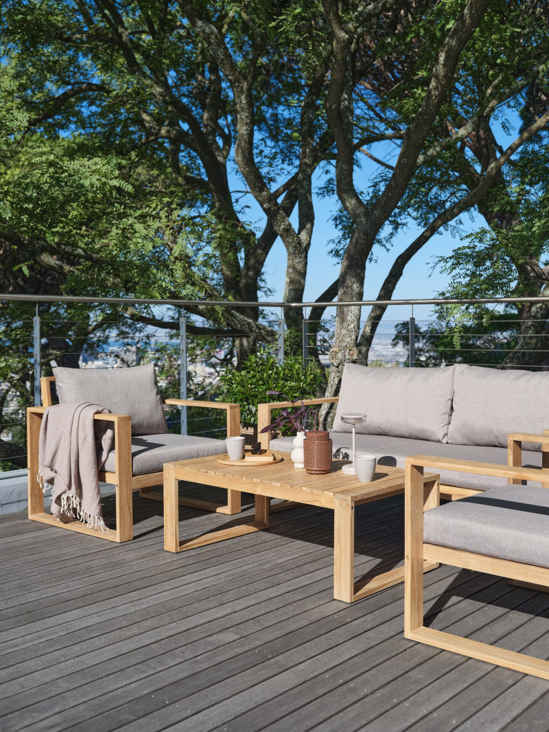 Tegoroczne lato przynosi także połączenie stylistyki mebli ogrodowych z naturą za pomocą jasnych drewnianych elementów, z który produkty są wykonane. Zestaw sof LILLEHOLM, stół FUGLSAND i krzesła RADSTED wprowadzają powiew świeżości do klasycznej kolekcji mebli z twardego drewna. Wszystkie drewniane meble ogrodowe JYSK posiadają certyfikat FSC® (FSC® N001715), co gwarantuje odpowiedzialne pozyskiwanie surowca ze zrównoważonej gospodarki leśnej.