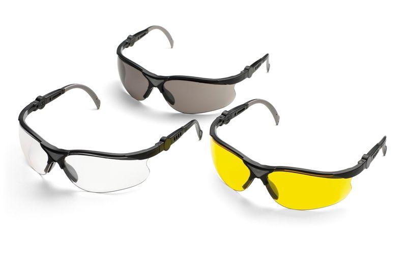 - Husqvarna okulary ochronne X – odporne na zarysowania okulary, z regulacją ustawienia soczewek i długości zauszników. Żółte soczewki poprawiają widzenie przy słabym oświetleniu, a soczewki zabarwione na szaro poprawiają jakość widzenia w słoneczny dzień.