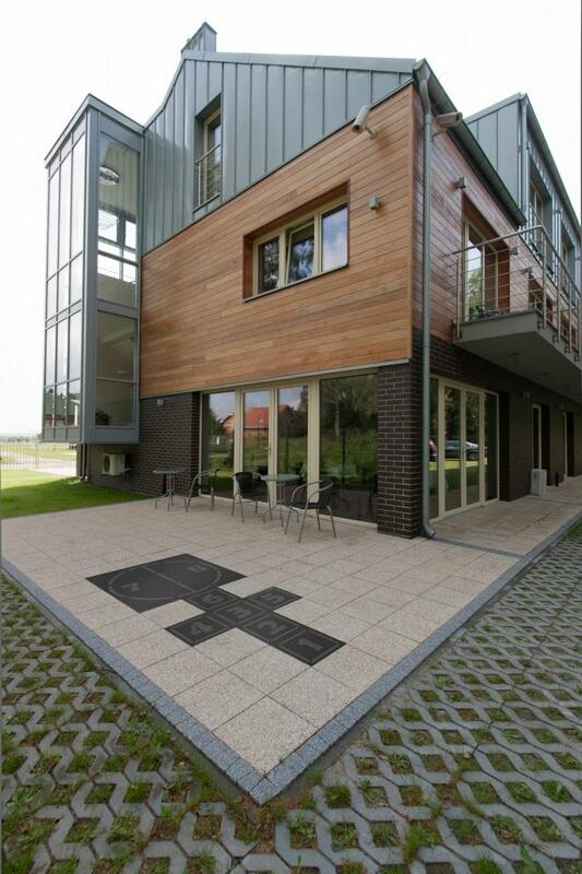 W nowej kolekcji Libet STAMPO pojawiły się ciekawe możliwości znakowania nawierzchni. Na życzenie architekta, możliwe jest wybiórcze śrutowanie kostek lub płyt, dzięki czemu na ich powierzchni uzyskiwane są płaskie, lekko chropowate wzory.