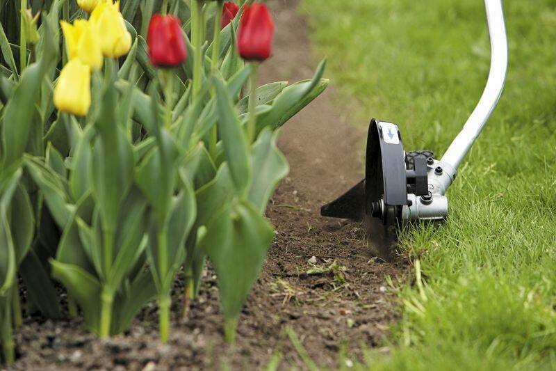 Zmiana przystawki przebiega niezwykle łatwo i szybko dzięki zatrzaskowemu mocowaniu. Znalezienie miejsca do składowania sprzętu w przydomowym garażu nie będzie stanowiło problemu. Zamiast wielu sprzętów, wystarczy zaopatrzyć się w jeden, z wieloma przystawkami. Podstawowym zadaniem każdej wykaszarki, jest praca na terenach z bujną trawą, przycinanie jej w trudno dostępnych miejscach, a także precyzyjne cięcie trawnika. Jeżeli chcemy zaprowadzić ład i porządek na przydomowym ogródku, wystarczy zmienić osprzęt i przy użyciu krawędziarki nadać ścieżkom i rabatom fantazyjne wykończenie. Pomaga to w wyróżnieniu miejsca gdzie kończy się trawnik, a gdzie zaczyna już rabata.