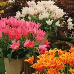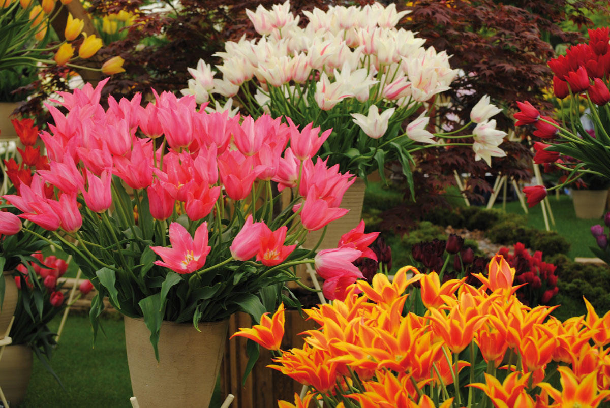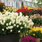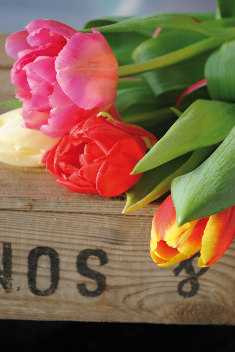 Tulipany fascynują miłośników pięknych kwiatów od setek lat. Bukiety i dekoracje z tulipanów mogą być delikatne i niewinne lub gorące i wzbudzające pożądanie. Dzięki tak szerokiej gamie kolorów i kształtów – kwiaty tulipanów nadają się do tworzenia bukietów różnej wielkości i w przeróżnych stylach. Wspaniale też wyglądają całkiem naturalne wiązanki – po 10 lub więcej sztuk luźnych lub związanych rafią i zwyczajnie wstawionych do wazonu. Do dekoracji można użyć tulipanów z ogrodu, zakupionych w kwiaciarni lub wcześniej posadzonych w donicach, koszykach wiklinowych i innych pojemnikach. Tulipany zrywamy w ogrodzie lub kupujemy w kwiaciarni wtedy, gdy ich pąki kwiatowe są jeszcze prawie całkiem zielone i tylko na krawędziach płatków jest widoczny kolor kwiatów. Nie potrzebują odżywek ani nawozów dla kwiatów ciętych, ponieważ nawet jeden lub dwa liście pozostawione na łodydze produkują wystarczająco cukru, aby wspomóc rozwój pąków i ich obfite kwitnienie.