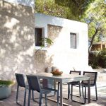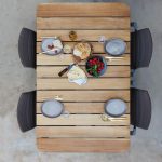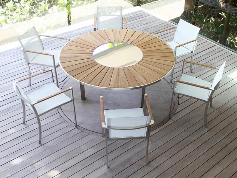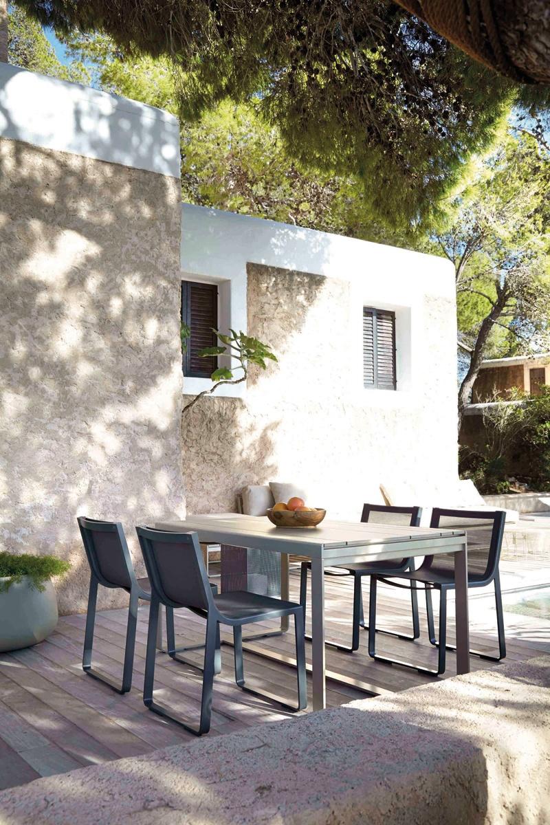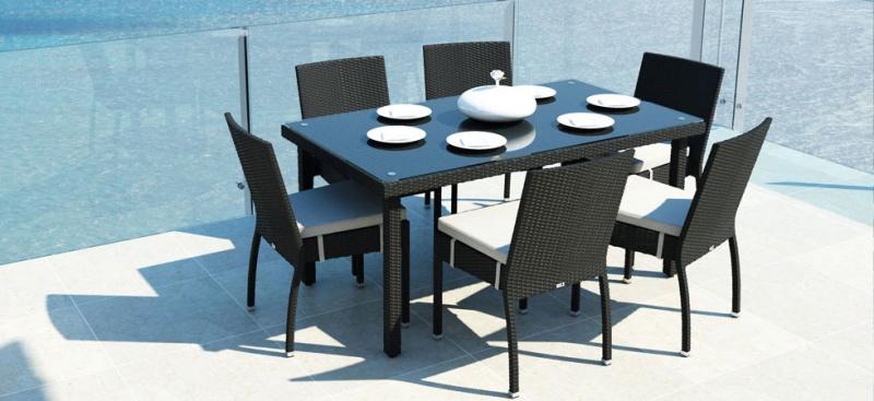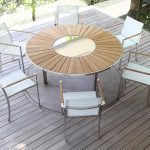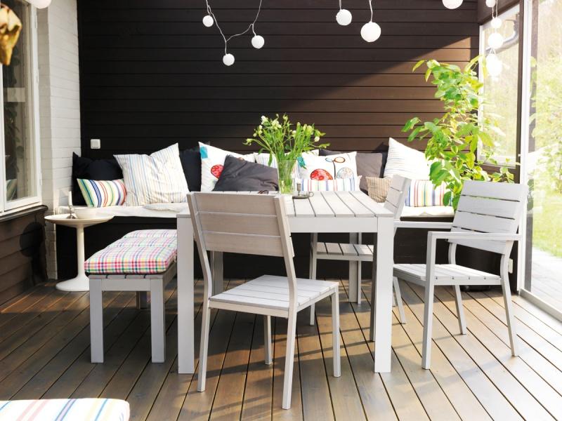 Centralnym punktem ogrodowej jadalni jest stół. Jego wybór powinien być podyktowany przede wszystkim względami praktycznymi. Nie jesteśmy od razu w stanie przewidzieć, jaka liczba osób poza samymi domownikami przy nim zasiądzie, jeśli zatem mamy na to miejsce, lepiej wybrać większy egzemplarz. Liczba krzeseł do niego dobranych zależna jest od formy mebla. Te kwadratowe lub prostokątne bardziej narzucają nam liczbę miejsc, te okrągłe dają pewną możliwość manewru. Pamiętajmy jednak, że zbyt gęsto ustawione siedzenia sprawią, że biesiadnicy nie będą mieli wystarczającej ilości miejsca na swobodne poruszanie się przy stole. O ile modele metalowe, te wykonane z rattanu czy wikliny wyposażone są najczęściej w blaty z tworzywa lub szkła, zatem ich powierzchnia jest pełna i gładka, o tyle stoły drewniane zrobione są z połączonych ze sobą cienkich desek. Upewnijmy się więc, czy blat jest wystarczająco funkcjonalny, aby naczynie położone pomiędzy elementami było stabilne.