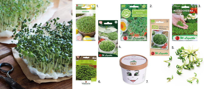 1. Rzeżucha nasiona tradycyjne, 3,10 zł, kod 45409602, 2. Rzeżucha bio, nasiona ekologiczne, 30 g, 7.99 zł, kod 45651102, 3. Rzeżucha microgreens, 7,88 zł, kod 82506147, 5. Rzeżucha na kiełki, 4.39 zł, kod 45407824, 6. Rzeżucha nasiona ekologiczne 7.00 zł, kod 45833200, 6. Rzeżucha Bio, 5 g, 3.20 zł, kod 44023490, kubek Pani Rzeżucha 15,30, kod 84495935