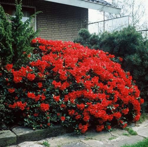 – 'Scarlet Wonder’ – pokrój regularny, półkolisty, zwarty, po 10 latach ok. 70 cm wysokości, kwiaty szkarłatne
