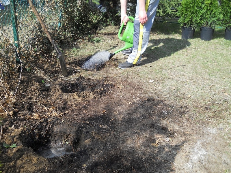 Krok 3. Keramzyt w dołkach intensywnie moczymy (około 6-9 litrów na każdy dołek).