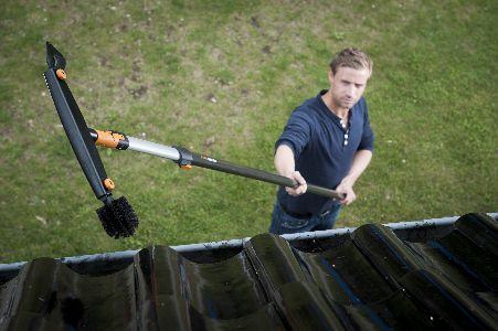 Czyszczenie rynien może wydawać się wyjątkowo trudnym zadaniem, ale dzięki nowej szczotce do rynien Fiskars stanie się to dziecinnie proste. Połączenie szczotki i skrobaka sprawi, że czyszczenie trudno dostępnych miejsc przestanie być problemem. Możliwość regulowania kąta nachylenia szczotki i skrobaka ułatwia dokładne usunięcie zanieczyszczeń zalegających w rynnach i ich udrożnienie.
