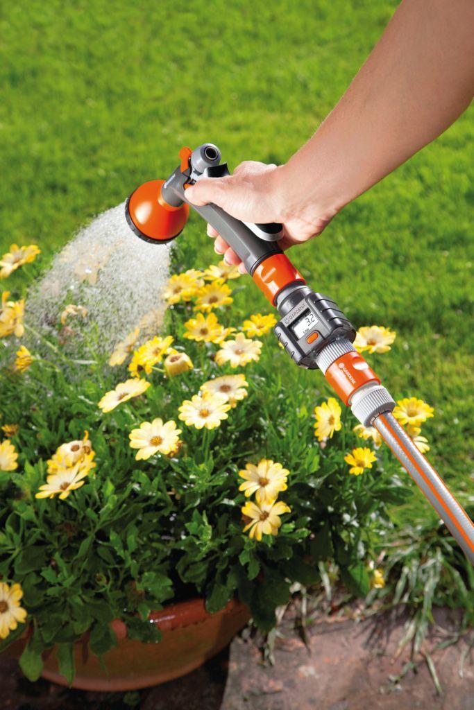 Licznik wody Gardena może być używany z różnymi produktami służącymi do nawadniania. Można go zamontować bezpośrednio przy pojedynczym urządzeniu zraszającym, np. pistolecie, lancy lub przy dowolnym zraszaczu stojącym. Można go również podłączyć bezpośrednio przy kranie lub pompie ogrodowej. Licznik jest wyposażony w podłączenie do przyłącza kranowego lub szybkozłącze Original Gardena System. Wystarczy „kliknąć”, żeby racjonalnie zarządzać zużyciem wody.