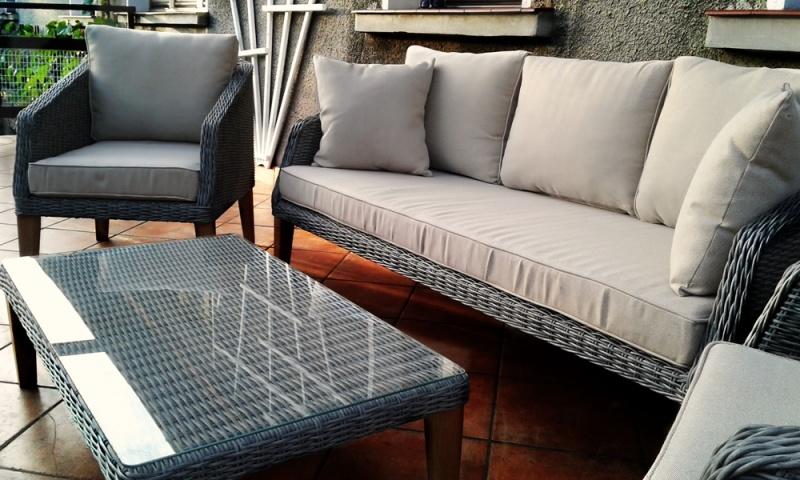 Bardzo ciekawym zestawem pod względem wzornictwa jest komplet technorattanowy Gambito. To zestaw nawiązujący designem do mebli skandynawskich – prostych, naturalnych, utrzymanych w pastelowej palecie barw. Meble wykończone są okrągłą i półokrągłą plecionką technorattanową, więc zestaw wygląda na wykonany z naturalnego rattanu. Prawdziwie przebojowe są jednak nogi mebli, wykonane z naturalnego drewna(!) Siedziska sofy i foteli są obszerne i wygodne, poduszki na siedziska i oparcia zapewniają najwyższy komfort, a kolorystyka (beże lub szarości) dodatkowo podkreśla skandynawskie inspiracje. To wspaniały komplet na taras, zaprojektowany zgodnie z najnowszymi światowymi trendami.