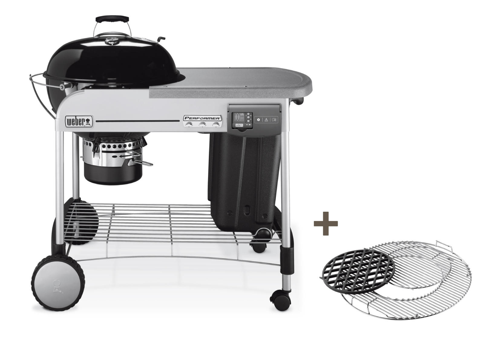 Performer to kulisty grill węglowy umieszczony na stabilnym wózku z dużym blatem. Posiada kilka nowoczesnych rozwiązań, które zapewniają duży komfort pracy podczas przyrządzania ulubionych dań. Chromowany dwuczęściowy ruszt o średnicy 57 cm pozwala na korzystanie z wymiennych wkładów (GBS) takich jak: kratka do steków, patelnia, wok, kamień do pizzy lub stojak na kurczaka. Rozpalanie brykietu odbywa się poprzez palnik gazowy zlokalizowany pod dolnym rusztem (System Touch-N-Go). Umieszczony w wózku przenośny zegar ułatwia kontrolę nad czasem grillowania potraw. Wózek wyposażony został w uchwyty na akcesoria oraz specjalny pojemnik do przechowywania brykietu.