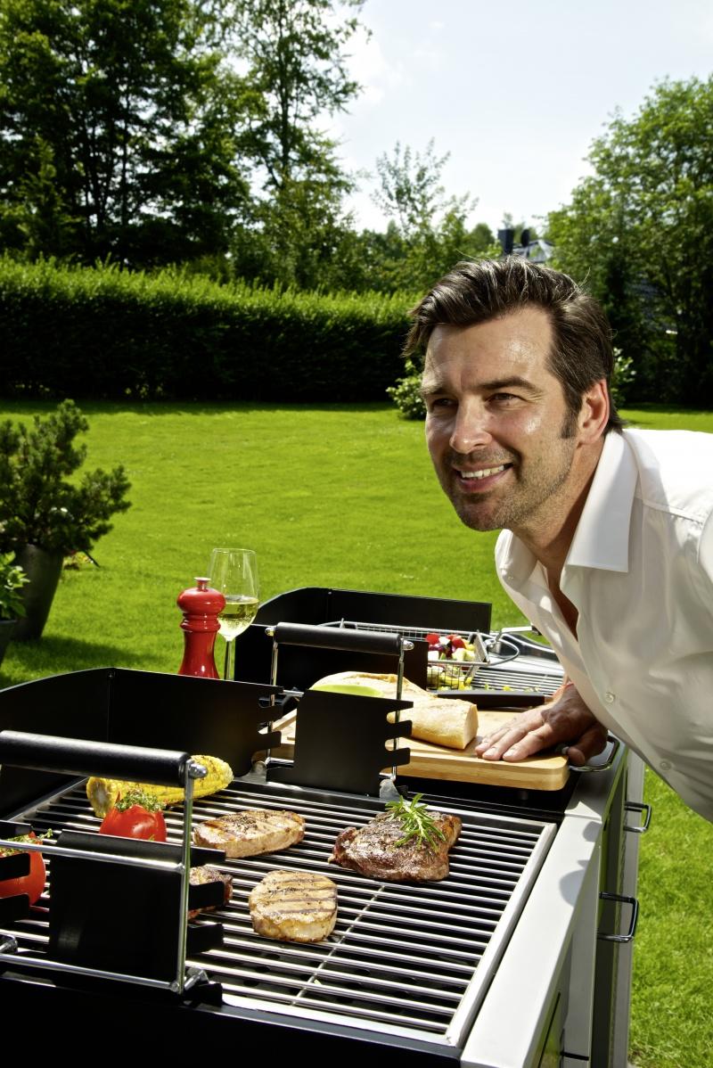 Przygotowanie posiłków na świeżym powietrzu dla kilku czy kilkunastu osób wymaga od gospodarza odpowiedniej organizacji pracy oraz przyrządzania i wydawania gotowych potraw. „Tradycyjne grille węglowe mają zazwyczaj mniejsze ruszty niż grille gazowe. Te drugie są najczęściej wyposażone w dodatkowe palniki, zestaw rożna oraz tzw. górny ruszt, na którym możemy trzymać przygotowane potrawy tak, aby nie ostygły. Wszystkie te elementy pozwalają na przygotowanie jednocześnie kilku potraw lub też pieczenie nie tylko kiełbasek czy mięsa, ale także ryb, owoców morza oraz warzyw. Dużym udogodnieniem jest system PTS stosowany w niektórych grillach gazowych firmy Landmann, który gwarantuje równomierne nagrzanie rusztu, a co za tym idzie optymalne grillowanie wszystkich potraw rozłożonych na całym ruszcie. Dodatkowym atutem grilli gazowych jest pokrywa pozwalająca na utrzymanie stałej temperatury panującej wewnątrz grilla. Warto także nadmienić, że projektanci szafkowych grilli gazowych dużą wagę przywiązują do funkcjonalnych akcesoriów takich jak szuflady, szafki czy wieszaki na akcesoria. Pozwalają one na przechowywanie niezbędnych podczas grillowania sztućców.” – podkreśla ekspert.