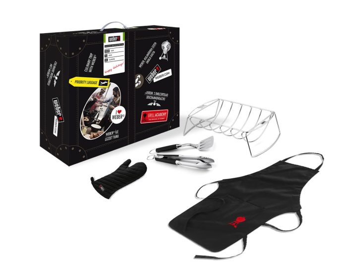 Z tym zestawem do grilla można przygotować żeberka po amerykańsku lub większy kawałek pieczeni. W kulinarnej walizce z USA znajdują się: stojak na żeberka, fartuch do grillowania, rękawica oraz łopatka i szczypce. To idealny zestaw do grillowania metodą pośrednią pod przykrywą. Inspiracje do wykorzystania tych akcesoriów zawarte są w specjalnym poradniku, dostępnym w punktach sprzedaży grilli Weber oraz na stronie www.weber.com