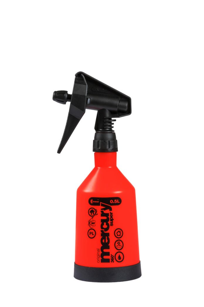 Mercury Super 360 o pojemności 0,5l oraz 1l idealnie sprawdzi się przy pielęgnacji niewielkich roślin w doniczkach. Unikatowy system oprysku Double Action® dodatkowo zwiększa jego wydajność – rozpylenie cieczy następuje zarówno przy naciśnięciu jak i zwolnieniu dźwigni pompki.