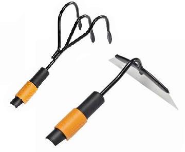 Kompatybilne ze wszystkimi narzędziami ogrodniczymi Fiskars QuikFit™ są aluminiowe trzonki, dostępne także w wersji teleskopowej o regulowanej długości od 2,4 m do 4 m (dla większego bezpieczeństwa użytkownika posiadają podwójny system blokowania). Trzonki Fiskars QuikFit™ charakteryzują się łezkowatym przekrojem, który zwiększa wygodę pracy.