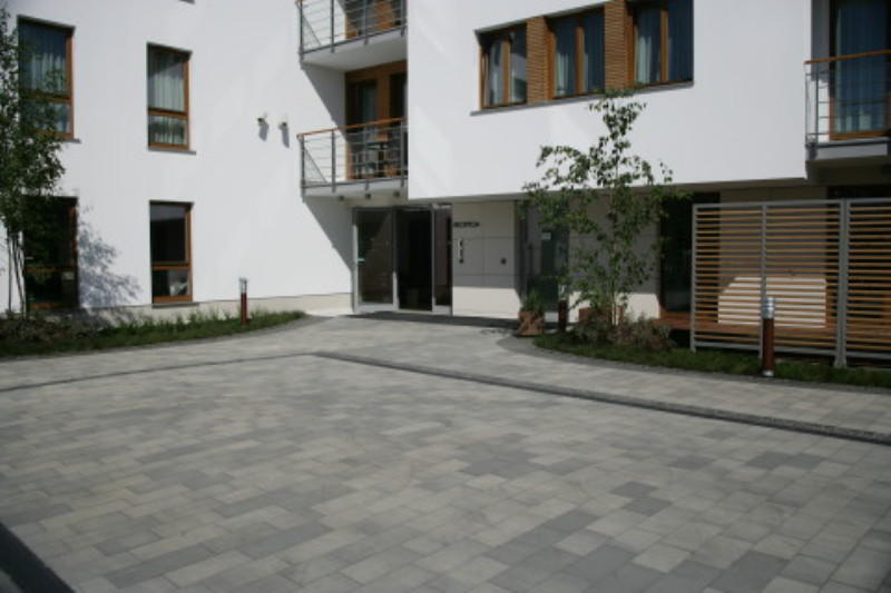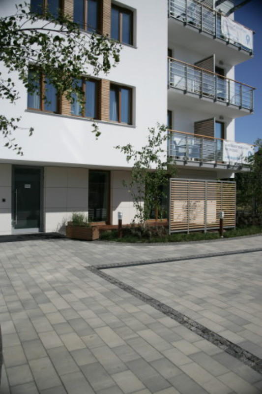 Architekci coraz częściej doceniają piękno nawierzchni czyniąc z niej pełnoprawny walor swoich projektów. Kostki Via Trio firmy Libet wykorzystane do aranżacji przestrzeni wokół nowoczesnego apartamentowca we Władysławowie podkreślają nie tylko rangę obiektu, ale tworzą niezwykły, dekoracyjny akcent.