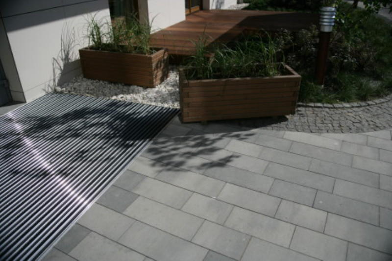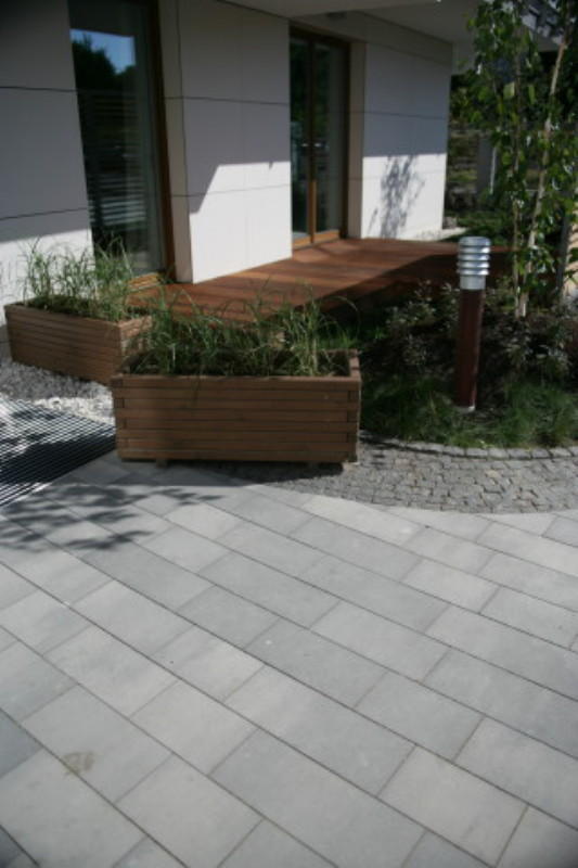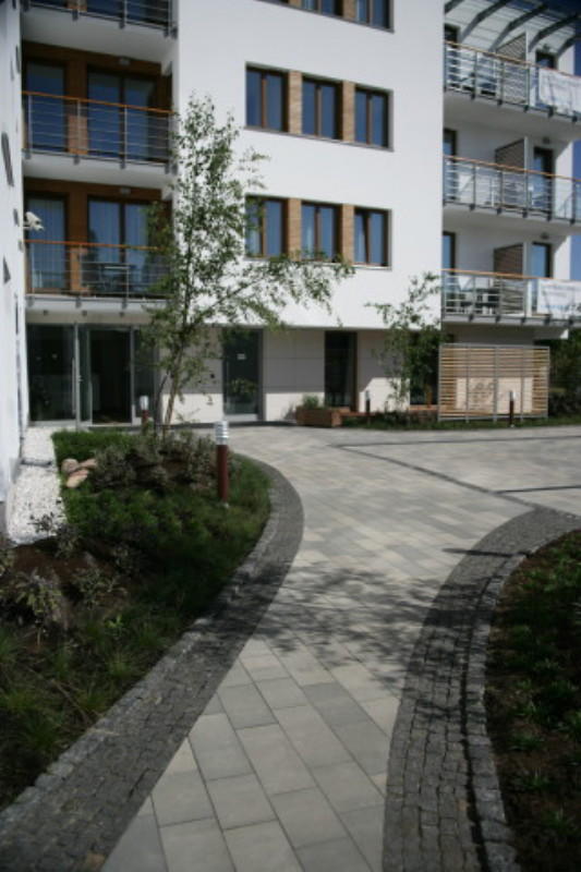 Sztuka ta udała się projektantom z pracowni Archiplan z Gdyni, autorom projektu nowoczesnego apartamentowca Gwiazda Morza zlokalizowanego w historycznej, kąpieliskowej dzielnicy Władysławowa. Realizacja ta stałaby się zapewne jedną z wielu powstających, gdyby nie szczególna dbałość o detale, które zadecydowały o stylu architektury i otaczającej jej przestrzeni. Na nawierzchnię wokół kompleksu, usytuowanego tuż przy porcie, w bliskim sąsiedztwie plaży nie przypadkowo wybrano system kostek Via Trio firmy Libet. Kompozycja z wydłużonych prostokątów tworzy dekoracyjny akcent całego założenia, a powściągliwa tonacja popielatego melanżu (technologia barwienia Color Flex), udanie nawiązuje do stalowego koloru morskiego lustra wody. Ciekawym, zwracającym uwagę zabiegiem zastosowanym przez projektantów jest powtórzenie barwy ciemno i jasnopopielatej nawierzchni z kostki w stalowych relingach na balkonach. Odniesienia do marynistycznego charakteru miejscowości widoczne są również w białych elewacjach oraz drewnianych wykończeniach, które udanie korespondują nie tylko z charakterem nawierzchni, ale również otaczającą zabudowę zielenią.