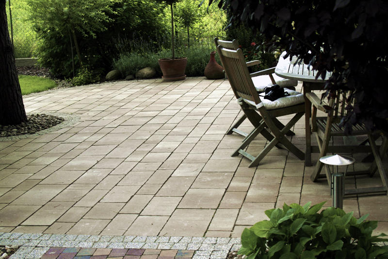 Niepowtarzalną aranżację tarasu kreują wzory i fantazyjne układy. Można je stworzyć poprzez odpowiednie łączenie produktów z różnych grup asortymentowych albo, jeżeli dostępna jest duża rozpiętość formatów lub kolorów, w ramach jednej kolekcji. Dobrym przykładem jest tu np. system Via Castello z linii Libet Decco Aspero, który zawiera kostki w aż 13 rozmiarach.
