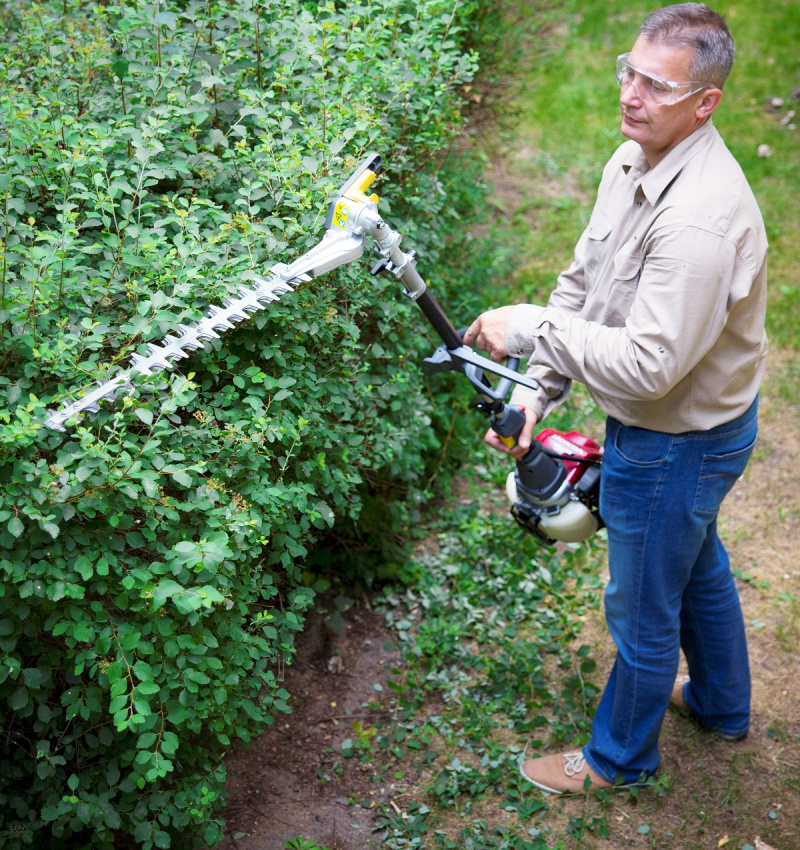 Sprawne, prawidłowo użytkowane nożyce na swój sposób odwdzięczą się zapewniając szybkie wykonanie pracy z pożądanym efektem formowania, niezależnie czy zaplanowaliśmy kształtowanie żywopłotu w trapez, prostopadłościan, łuk. Urzeczywistnienie wizji owej formy ułatwiają ergonomiczne, idealnie wyważone i lekkie nożyce, którymi można pracować w każdej płaszczyźnie. Wygodne i przyjemne formowanie żywopłotów zgodnie z indywidualną wyobraźnią umożliwiają nożyce długie i krótkie z wielofunkcyjnego narzędzia Honda Versatool. Te dwustronne ostrza, łączone z jednostką napędową wyposażoną w 4-suwowy silnik Honda o mocy 1 KM lub 1,3 KM, powstały z myślą o komforcie użytkownika i jakości pielęgnacji krzewów. Przeznaczone są do wykonywania precyzyjnych cięć w stabilnej pozycji bez konieczności schylania się czy korzystania z drabinki. Ich zasięg można dodatkowo zwiększyć za pomocą przedłużek o długości 50 cm lub 100 cm. Dzięki nowoczesnej konstrukcji silnika umożliwiającej obrót o 360º, nożycami można pracować w każdej płaszczyźnie. Dodatkowym udogodnieniem nożyc z Honda Versatool jest regulacja kąta pracy (nożyce krótkie – 54°, nożyce długie – 90°), co w przypadku nożyc długich zapewnia bardzo dokładne formowanie wyższych partii krzewów w każdej płaszczyźnie.