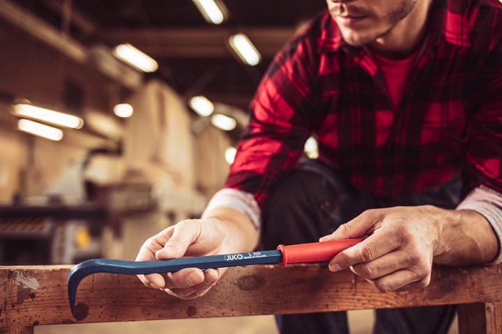 W starym drewnie mogą być także zakotwiczone gwoździe. Jak się ich szybko i wygodnie pozbyć? – Wystarczy użyć łomo-wyciągacza płaskiego do gwoździ lub młotka ciesielskiego z zębem. Jedno i drugie narzędzie sprawdzi się w tym celu doskonale – podpowiada Daniel Światłoń, Kierownik Działu Technicznego JUCO. Kupując takie akcesoria, pamiętajmy, aby były wykonane z wysokiej jakości materiałów. Szczególnie ważna jest część robocza – powinna być kuta i hartowana indukcyjnie. Takie niezawodne narzędzia, produkowane w Polsce, znajdziemy chociażby w ofercie JUCO. – Łom-wyciągacz do gwoździ płaskich, w wersji standard lub tradycyjny, to trwały, solidny wyrób, który powstał z wysokogatunkowej stali, a więc posłuży nam przez wiele lat, nawet dla kolejnych pokoleń. W dodatku ma świetny stosunek jakości do ceny. Do tego typu prac sprawdzi się też młotek ciesielski z zębem MONOBLOCK, który posiada mocny szpic do podważania gwoździ i praktyczną wstawkę magnetyczną do ich przytrzymywania. Został wyposażony ponadto w wygodną rękojeść z tworzywa, dzięki której sprzęt stabilnie leży w dłoniach. Jeśli chcemy sięgnąć po lżejsze narzędzie, wybierzmy natomiast młotek ciesielski z zębem z serii Fiberglass z trzonkiem z włókna szklanego – dodaje ekspert JUCO. Do usuwania gwoździ można również wykorzystać poręczny wyciągacz jednostronny, a do wyjmowania desek przyda się łom-wyciągacz w wersji standard.