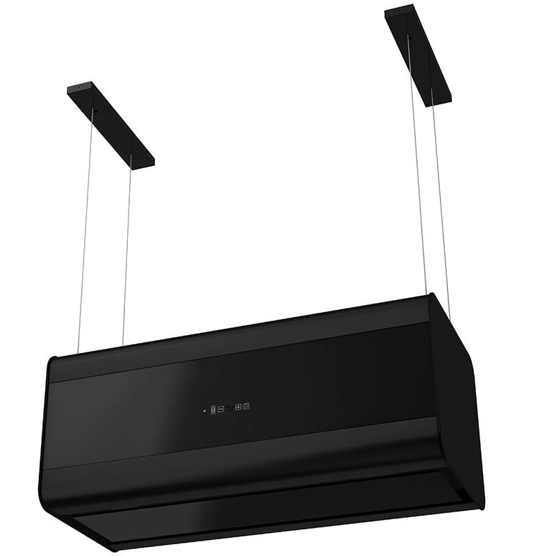 Subtelny system podwieszania okapu na solidnych w swojej konstrukcji i delikatnych w wyglądzie linkach, nadaje mu dodatkowej lekkości. Gładka struktura okapu wykonanego z trwałego czarnego hartowanego szkła oraz stali lakierowanej na czarno umożliwia łatwe utrzymanie w czystości. Okap wyposażony został w intuicyjne i podświetlane sterowanie dotykowe, pozwalające na obsługę okapu opuszkiem palca oraz przyjazne i energooszczędne oświetlenie LED.