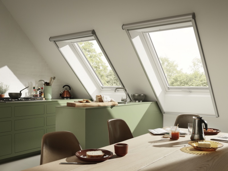 Dla klientów, którzy chcą mieć możliwość swobodnego wyglądania ze swojego poddasza, polecamy okno uchylno-obrotowe VELUX GPU. Można je uchylić do kąta 45 stopni i zatrzymać na dowolnie wybranym kącie rozwarcia. Zalecany kąt nachylenia połaci dachowej dla okien obrotowych wynosi 15-90º, zaś dla okien uchylno-obrotowych 20-55º. W obydwu typach okien można zastosować elektryczny system otwierania, czujnik deszczu automatycznie zamykający okno w razie opadów i elektryczne akcesoria przeciwsłoneczne. System elektryczny można zainstalować w już zamontowanych oknach lub kupić okno VELUX GGU Integra™ – fabrycznie wyposażone w system elektryczny. Okno VELUX GIU jest elementem nieotwieranym, który instalujemy bezpośrednio pod oknami połaciowymi w konstrukcjach bez ścianki kolankowej.