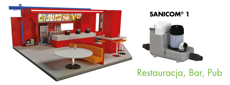 Wybierając pompę podobnie jak w przypadku pomporozdrabniaczy musimy zadać sobie pytanie jakie i ile przyborów chcemy do niej podłączyć. W małej kuchni bardzo dobrze sprawdzi się pompa SANIACCESS 4, SANISPEED lub SANIVITE. Są to bardzo wydajne pompy przeznaczone do intensywnej pracy. Odprowadzają ścieki ze zlewozmywaków, umywalek i umożliwiają podłączenie wszystkich (z wyjątkiem WC) pozostałych urządzeń sanitarnych. Posiadają możliwość pompowania ścieków do 7 m w pionie lub do 70 m w poziomie. Maksymalna temperatura ścieków to 75°C dlatego też doskonale się sprawdzą przy podłączeniu zmywarki lub pralki. Moc silnika 400 W, klasa ochrony IP44.