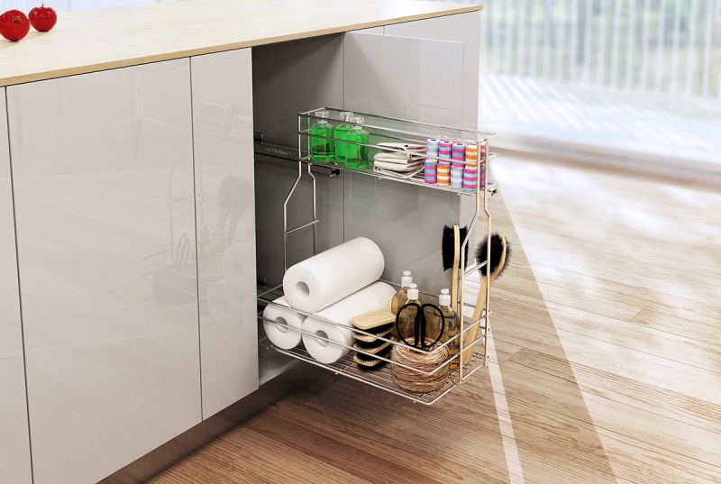 Urządzanie kuchni można porównać do układania skomplikowanych puzzli. Meble muszą do siebie idealnie pasować, tworząc miejsce, w którym pomieścimy wszystko bez czego nie wyobrażamy sobie przygotowywania posiłków. Każdy centymetr jest tu na wagę złota! Kreacja kuchennej aranżacji, skrojonej na miarę indywidualnych potrzeb, okaże się znacznie prostsza z nowoczesnymi systemami cargo. Mamy do wyboru rozwiązania różnej wielkości, przeznaczone do szafek wysokich, niskich oraz narożnych. Najbardziej wymagających klientów zadowoli fakt, że firma REJS umożliwia indywidualizację swoich systemów. Jeśli chcemy, możemy zamontować w nich dodatkową półkę lub przegrodę do organizacji wewnętrznej. Warto zwrócić uwagę na różnorodne Carga Mini, które wykorzystuje się w szafkach podblatowych. Te dwupoziomowe mechanizmy pozwolą nam na uporządkowanie produktów spożywczych (w zależności od modelu m.in. niewielkich słoików, wysokich butelek, pojemników z przyprawami itp.) lub artykułów przeznaczonych do utrzymywania czystości (np. ręczników i detergentów). Bardzo często przy planowaniu kuchennej aranżacji pozostaje do zagospodarowania niewielka przestrzeń o kilkunastu centymetrach szerokości. Jedynym sposobem na jej optymalne wykorzystanie jest wysuwane Cargo Wąskie, które doskonale sprawdzi się do przechowywania przypraw i małych pojemniczków, a także różnego rodzaju ściereczek.