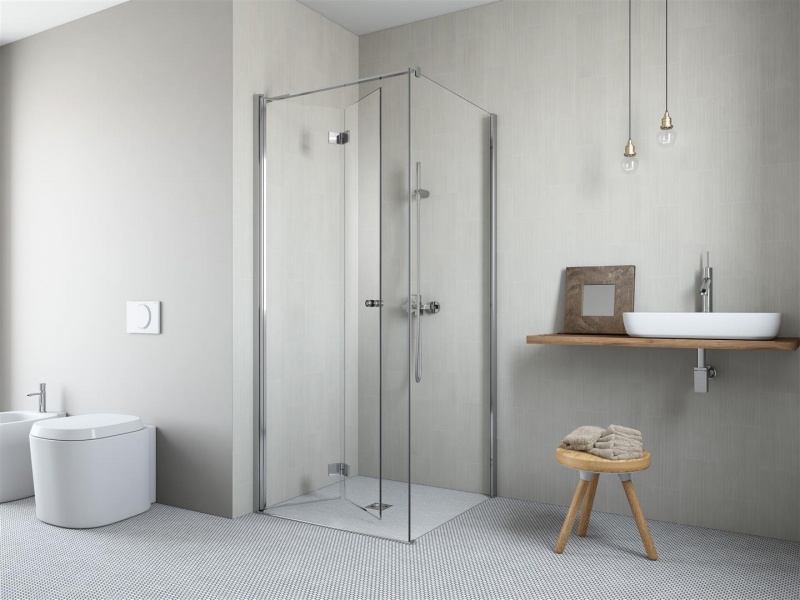 Kabina Essenza KDJ B została stworzona z myślą o małych łazienkach. Zbudowana jest ze ścianki bocznej oraz składanych drzwi wykonanych z hartowanego szkła o grubości 6 mm, pozwalających na swobodne wejście do kabiny. Kabinę zdobią eleganckie chromowane detale, a wykorzystane uchwyty z tworzywa TPE w kolorze czarnym lub grafitowym pełnią rolę odbojników zabezpieczających przed uszkodzeniami.