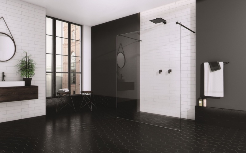Kabina Modo New Black I z czarnymi profilami doskonale pasuje do wnętrz urządzonych w stylu industrialnym. Model charakteryzuje połączenie nowoczesności z prostotą. Bezpieczeństwo użytkowania produktu gwarantuje 8 mm hartowane szkło (dostępne w 6 wariantach) oraz wsporniki w kolorze czarnym, które zapewniają stabilną konstrukcję. Komfort użytkowania kabiny poprawia zastosowana hydrofobowa powłoka EasyClean® zabezpieczająca szkło przed zanieczyszczeniami i kamieniem lub dostępna na zamówienie dożywotnia ochrona ShowerGuard®. Model występuje w programie „Na miarę” oraz usłudze laserowego grawerowania. Cena od 1760 zł brutto.
