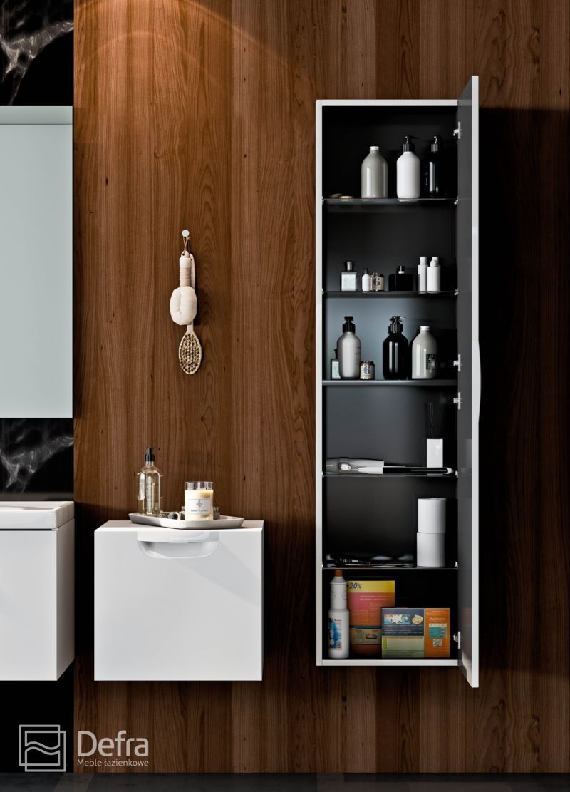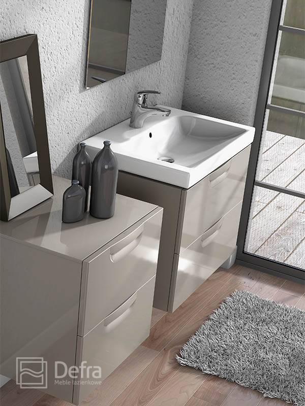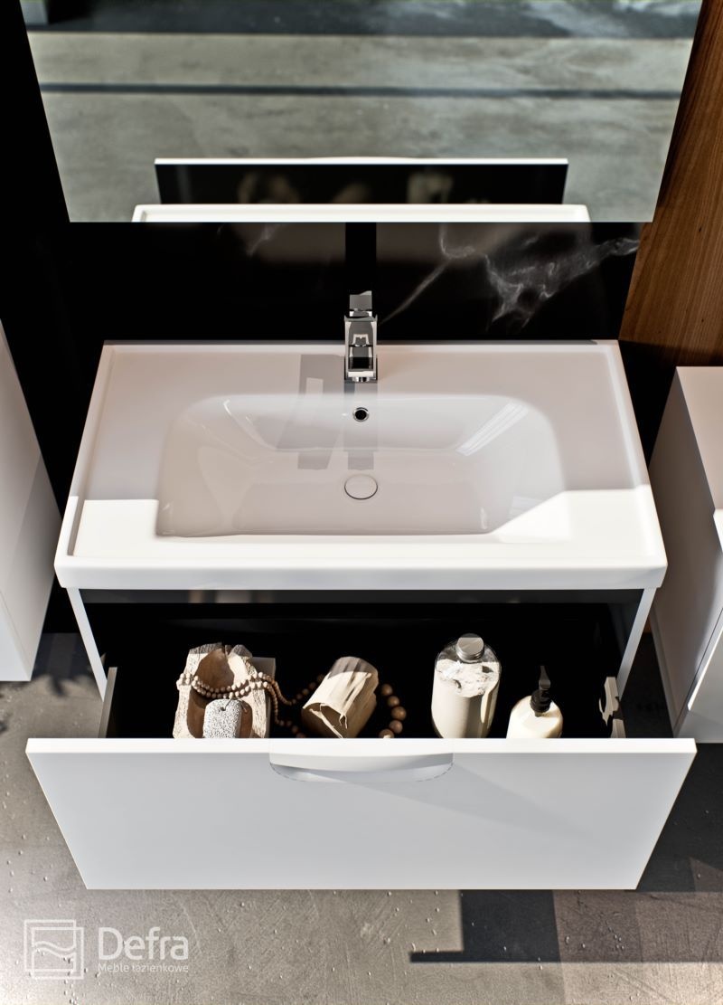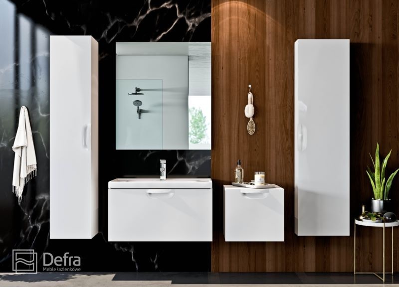 Portfolio kolekcji FLOU dopełniają praktyczne szafki z blatem o jednej lub dwóch szufladach, oraz tradycyjne oraz płaskie i płytkie słupki, umożliwiające łatwiejszy dostęp do przechowywanych w nich kosmetyków. Ta nowość w ofercie Defra doskonale pasuje do mniejszych łazienek, ale równie pięknie prezentować się i w przestronniejszych pomieszczeniach.