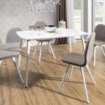 Stół Essai White świetnie komponuje się z krzesłami Foglio.