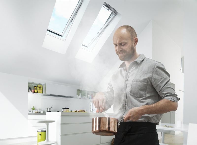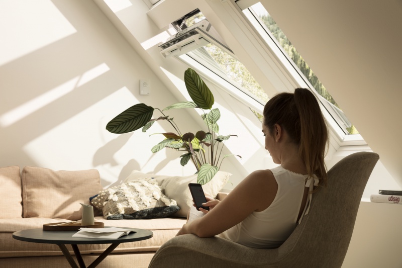 Działania takie jak sprzątanie, gotowanie czy kąpiel zwiększają poziom wilgotności powietrza. Aktywność czteroosobowej rodziny powoduje, że do powierza w domu trafia średnio 10 litrów wody dziennie. Mieszkanie powinno być wietrzone co najmniej od dwóch do czterech razy dziennie. Nadmiar wilgoci może doprowadzić do powstawania pleśni i poważnych problemów zdrowotnych jak np. astma czy infekcje gardła. W takiej sytuacji konieczne jest częste samodzielne wietrzenie lub zaopatrzenie się w np. inteligentny system VELUX Active. W oparciu o lokalne warunki pogodowe oraz czujniki wewnętrzne czujniki nieustannie mierzą temperaturę, wilgotność powietrza oraz stężenie CO2 i na tej podstawie otwierają lub zamykają okna dachowe. Dodatkowo, system pomaga chronić poddasze przed przegrzaniem – jeśli wyczuje, że robi się zbyt ciepło, automatycznie zasłoni elektrycznie sterowane rolety czy markizy VELUX. Myśląc nad rozplanowaniem okien powinniśmy również zwrócić uwagę na takie rozmieszczenie, które umożliwi efektywne wietrzenie. Najlepszy efekt uzyskamy w przypadku, gdy możliwe jest tzw. wietrzenie na przestrzał, które pozwala na szybką wentylację w krótkim czasie.