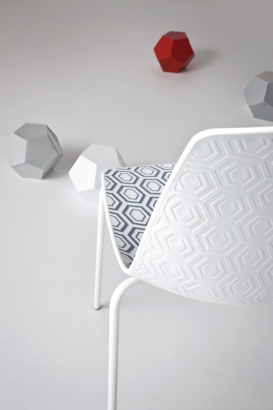 Krzesło Alhambra wyróżnia się harmonią delikatnych krzywizn. Charakterystyczne dla tego modelu są sześciokątne wzory na siedzisku, przypominające arabskie mozaiki. Krzesła ALHAMBRA wykonane są z technopolimeru, a stelaż może być chromowany, lub malowany na biało – dostępna jest wersja na czterech nóżkach, na płozach, lub na pojedynczej nodze. W ofercie, oprócz klasycznego modelu, znajduje się również wariant z podłokietnikami oraz wersja ECO, wykonana z kompozytu drewna i tworzywa sztucznego.