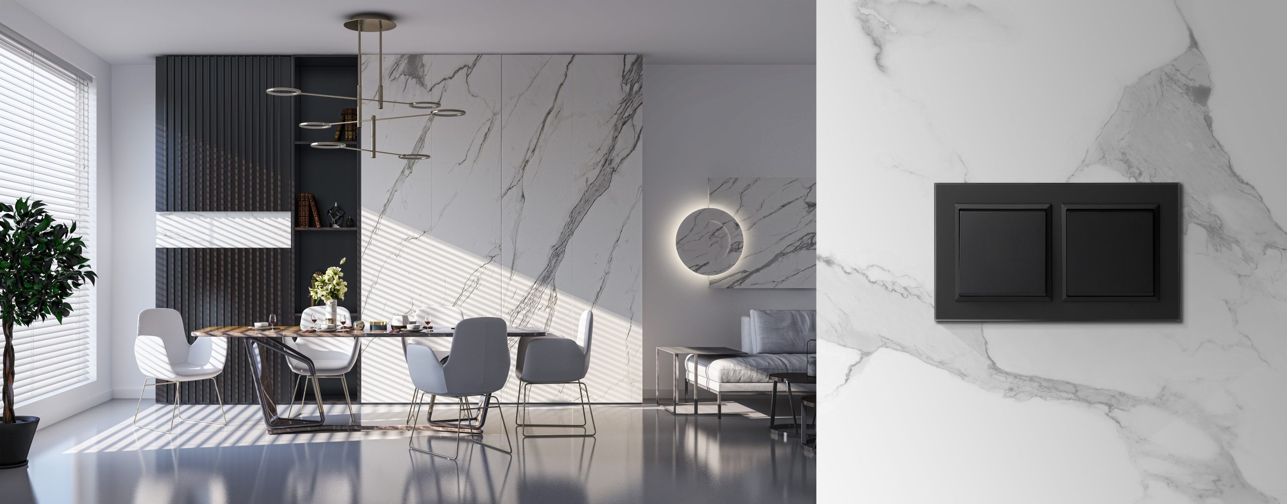 W stylach eleganckich czerń zestawiona z marmurem, złotem czy mosiądzem dodaje wnętrzu luksusu i głębi. W modern classic czarne gniazdka stają się nowoczesnym akcentem przełamującym klasyczną symetrię.