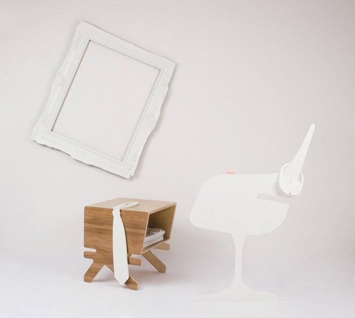 AB i KR: Staramy się nie przywiązywać do swoich projektów, nie zatrzymywać się i cały czas pracować nad kolejnymi realizacjami, co nie jest łatwe. Za każdym projektem stoi jakaś historia, wiele godzin tworzenia. Sam przedmiot daje nam satysfakcję, ale to historia ma dla nas szczególne znaczenie. Gdybym miała wskazać projekt, który dla mnie jest szczególnie ważny, to byłaby to art. kolorowanka. Jest to 3 w 1: teczka (posiada uchwyt do noszenia i powieszenia na ścianę), rama (nadrukowane na teczkę miejsce na obrazek) oraz po rozłożeniu stoliczek. Cały projekt jest w fazie prototypu i jest wykonany z kartonu. Zgodnie z założeniem, dziecko ma mieć możliwość przeniesienia kolorowanki i umieszczenia jej w dowolnym miejscu, aby móc swobodnie rysować. Otwieranie teczki i składanie jej do postaci stoliczka jest bardzo proste. Po rozłożeniu dostajemy się do małego schowka, w którym są karty kolorowanki oraz kredki. Kredki są duże trójkątne – takie najlepiej ćwiczą prawidłowe chwytanie u dzieci. Karty mają różne odcienie i faktury, mają nadrukowane w formie konturów dzieła największych artystów malarstwa współczesnego. Ideą całego projektu jest to, aby kilkuletnie dziecko, miało kontakt ze sztuką.