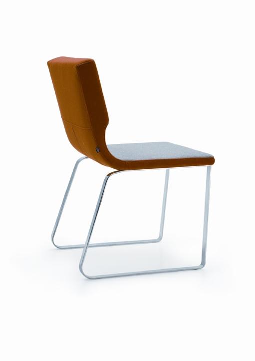 Ten charakterystyczny kształt jest wynikiem prostego zabiegu formalnego. Usunięcie wybranej części z jednorodnej bryły pozwoliło zbudować siedzisko o optymalnych parametrach użytkowych z praktyczną, półokrągłą przestrzenią: miejscem dla lędźwi i grubszej garderoby. Zdecydowany kontrast pomiędzy siedziskiem, a znacznie grubszym, miękkim oparciem wzmacnia wrażeniu komfortu i wyraźnie eksponuje zamysł formalny. Konstrukcja umożliwia dowolne zestawianie ze sobą różnorodnych materiałów obiciowych, w tym stosowania bardziej wytrzymałych skór lub tkanin specjalnie na siedziska. Całość podkreślają cienkie chromowane płozy metalowej bazy.Krzesło COMMA projektu Renaty Kalarus wyróżnione zostało w najbardziej znanym międzynarodowym konkursie wzornictwa przemysłowego RED DOT 2009. Dostępne w z płozami chromowanymi lub lakierowanymi, tapicerowane w tkanianie lub skórze.