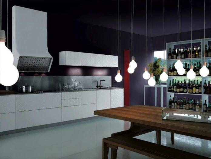 – wysoka zabudowa szaf składająca się z modułowych elementów do przechowywania żywności i wbudowanym AGD.