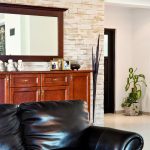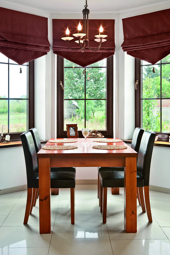 Nie zdecydowali się na zatrudnienie architekta. To miała być ich wizja nie zmącona żadnymi szablonami. Zaufali swoim upodobaniom i postanowili być konsekwentni. Niezwykle przestronna strefa dzienna została podzielona na: dużą i komfortową kuchnię oraz salon z jadalnią, zachowując przy tym przyjemne poczucie przestrzeni. Tutaj granice i funkcję poszczególnych stref wyznaczają meble. Duży stół w kolorze orzecha i wygodne krzesła tworzą jadalnię z widokiem na malowniczą okolicę. Komfortowy wypoczynek usytuowany na wprost kominka, przy którym w zimie uwielbia spędzać czas cała rodzina, tworzą przestronny salon. Stonowana kolorystyka, białe ściany miały być jedynie tłem do dalszych aranżacji. Marta i Bartek chcieli aby ich dom wyrażał się w autentycznych dekoracjach. Stąd pojawiają się tutaj stylowe tkaniny, świeczniki zakupione na targach staroci i piękne ikony – pamiątki przywiezione z wakacyjnych podróży. Choć jak sami twierdzą ich podróż w zakupach „przedmiotów z duszą” dopiero się rozpoczyna.