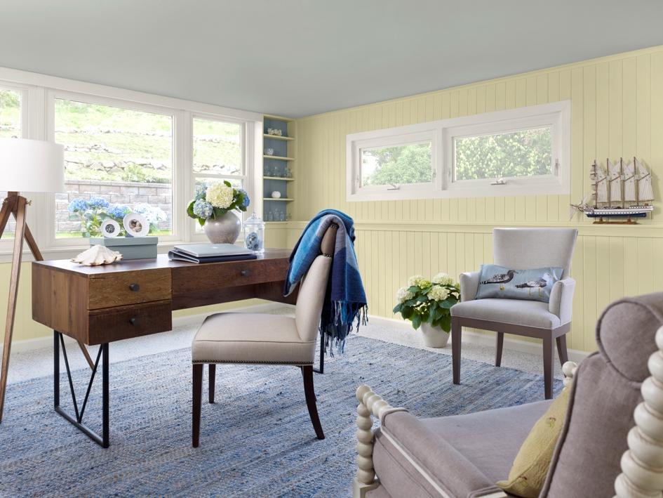 Nowy kolor roku nie przykuwa nadmiernie uwagi domowników. Dzięki temu sprzyja chwilom relaksu i doskonale sprawdzi się jako przewodni kolor w salonie, jak i sypialni. Ze względu na swój uniwersalny charakter Lemon sorbet 2019-60 współgra zarówno z nowoczesnym, jak i klasycznym wystrojem wnętrz. Wprost wymarzonym miejscem dla niego są jednak podmiejskie rezydencje utrzymane w klimacie prowansalskim. Kolor Roku dobrze czuje się w towarzystwie innych kolorów, a najlepiej u boku subtelnej zieleń polnych kwiatów tranquility AF-490 i tajemniczego błękitu van courtland blue HC-145.