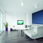 Zastosowanie przewagi bieli w tak dobrze doświetlonym wnętrzu dowodzi, że nie musi to oznaczać zimnego i sterylnego klimatu. Jasne powierzchnie tworzą swego rodzaju tło do zaprezentowania elementów. W przypadku tego projektu nieliczne powierzchnie z kolorem, jak okładzina ścienna, naturalny kamień czy dąb wędzony nabierają innego wymiaru. Dodatkowo panorama widoczna zza przeszklonej ściany, w zależności od warunków atmosferycznych, znacząco wpływa na atmosferę wnętrza. W tak kolorystycznie wyciszonej przestrzeni bez problemu można odpocząć przy delikatnym swingu muzyki.