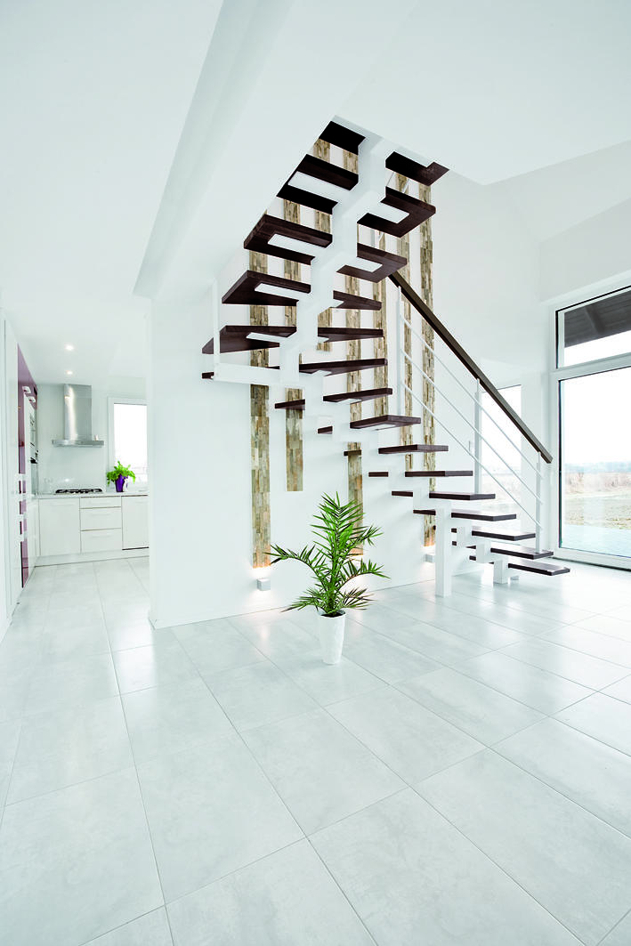 2. Lekka konstrukcja schodów nie przytłacza wnętrza, lecz tworzy iluzjonistyczne złudzenie, które sprawia, że wydaje się ono wyższe, niż jest w rzeczywistości.