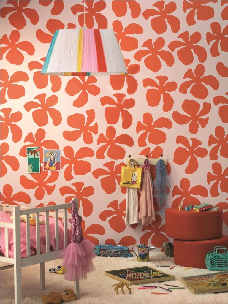 Kwiatowe motywy na ścianie w energetyzującym pomarańczowym odcieniu to świetny pomysł na nietuzinkową aranżację pokoju dziecięcego. Taki optymistyczny akcent pomoże z uśmiechem rozpocząć każdy dzień. Motyw dekoracyjny w tak intensywnej barwie najlepiej wykonać tylko na jednej ścianie, a kolorem tła najbezpieczniej uczynić biel. Ornament nie „przytłoczy” wówczas całości aranżacji, pozostając jednocześnie jej wyjątkowym elementem.