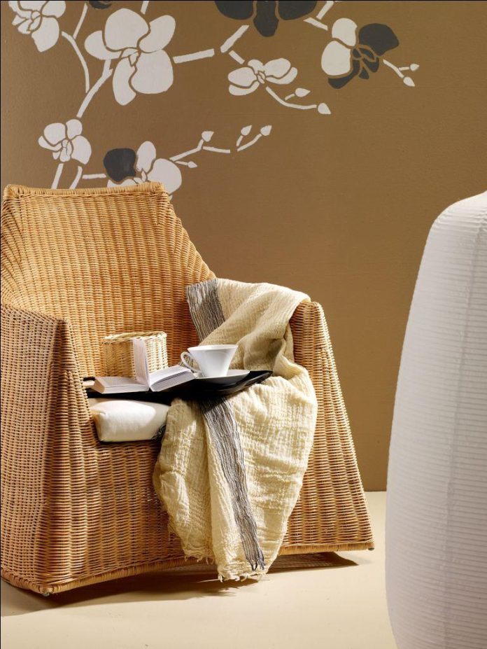 Natura sprzyja wytchnieniu i wyciszeniu. Kącik wypoczynkowy warto zaaranżować w ciepłych kolorach ziemi. Dodatkowego uroku doda temu miejscu wymalowany na ścianie kwiecisty wzór. Klimatu wnętrza dopełnią elementy wyposażenia wykonane z naturalnych materiałów: wygodny, wiklinowy fotel i miękki koc.