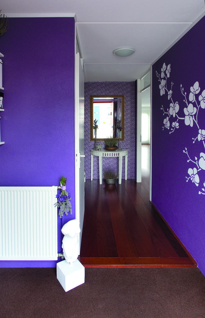 Zdecydowany odcień fioletu przełamany łagodnością bieli wprowadza do wnętrza niezwykły powiew świeżości.
